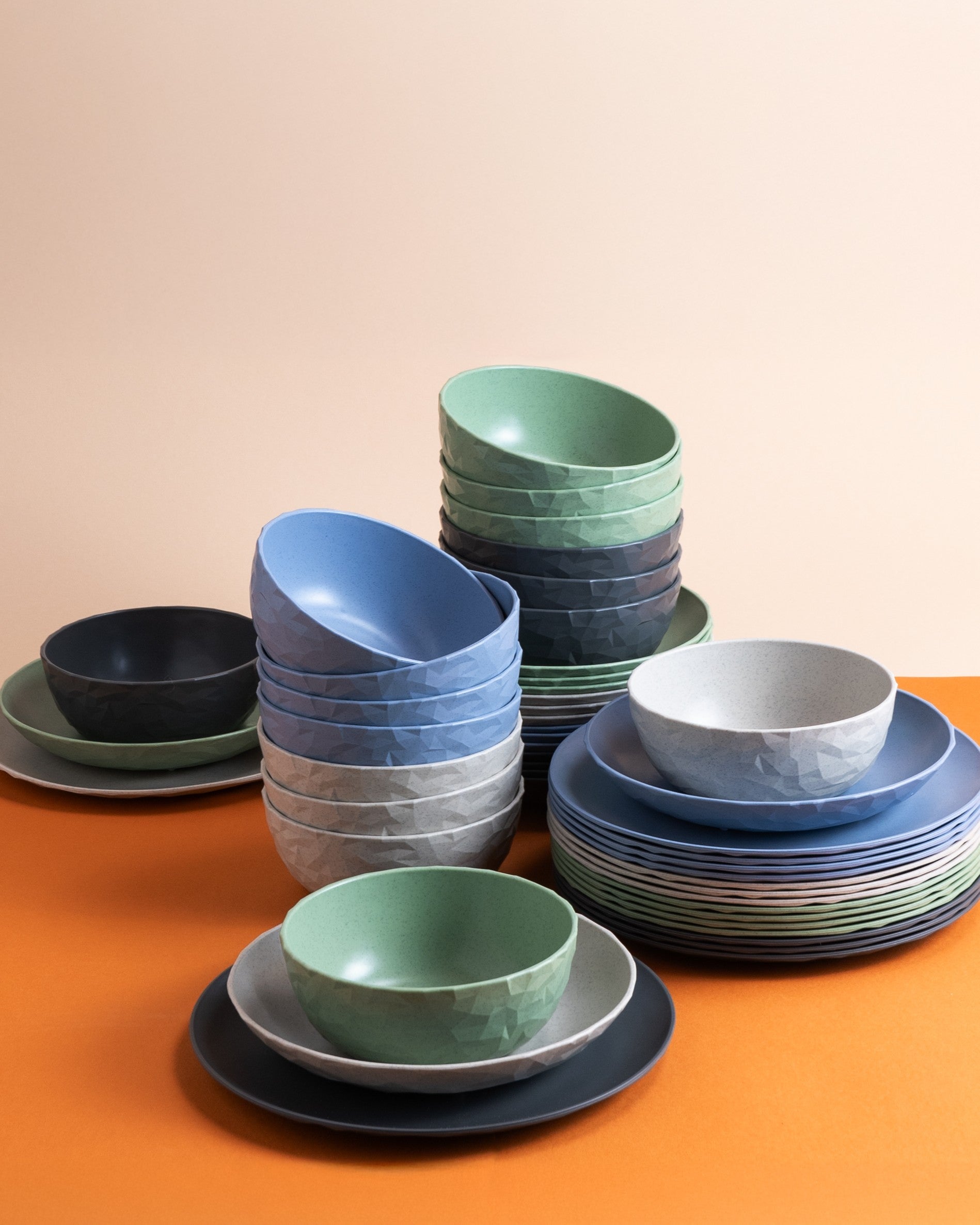 Unser Werkstoff ist kein gewöhnliches Material – er ist biozirkulär, ressourcenschonend und absolut einzigartig. Hergestellt aus recycelten
