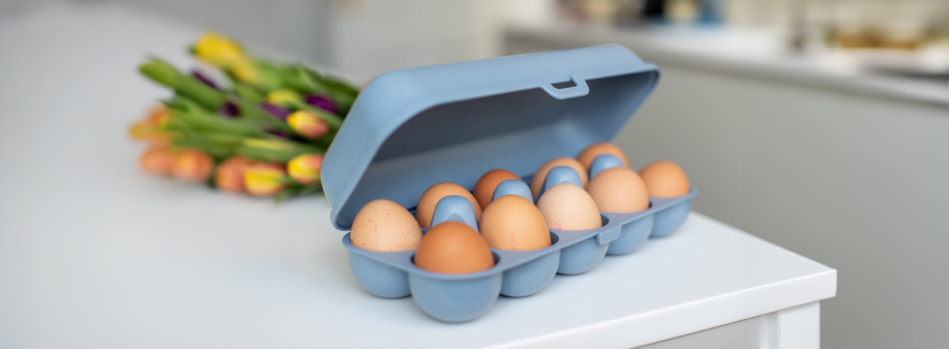 Halte Küche und Kühlschrank perfekt organisiert mit unseren praktischen Aufbewahrungsboxen. Highlight: die Eierbox EGGS TO GO – die Mehrwegbox für bis zu zehn Eier, die jede Menge Einwegkartons spart.