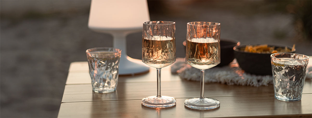 koziol has the ideal tableware for relaxed camping holidays and fun picnics. Everything is super lightweight yet robust, stackable, and easy to clean. If you want to enjoy your wine in style in the evening, take the CLUB super glass with you. The glasses are made of unbreakable high-tech plastic and can withstand bumpy roads or transport by bike. The NORA food storage containers are perfect for preparing, transporting, and serving food, and the TASCHE XL transforms from a funky beach bag to a voluminous picnic basket in an instant.