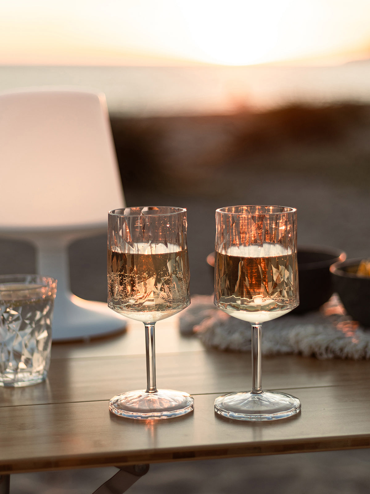 A design classic. You're familiar with the faceted glass from your vacation in France, and it brings back memories of gentle summer days by the sea. Now, this design icon from the 1950s is available in a new interpretation made from shatter-resistant, high-tech material. The mug has a pleasant feel, and its slim shape fits comfortably in the hand. It's stackable, lightweight, and robust, making it perfect for use in the garden or on the balcony, at picnics, and, of course, while camping.