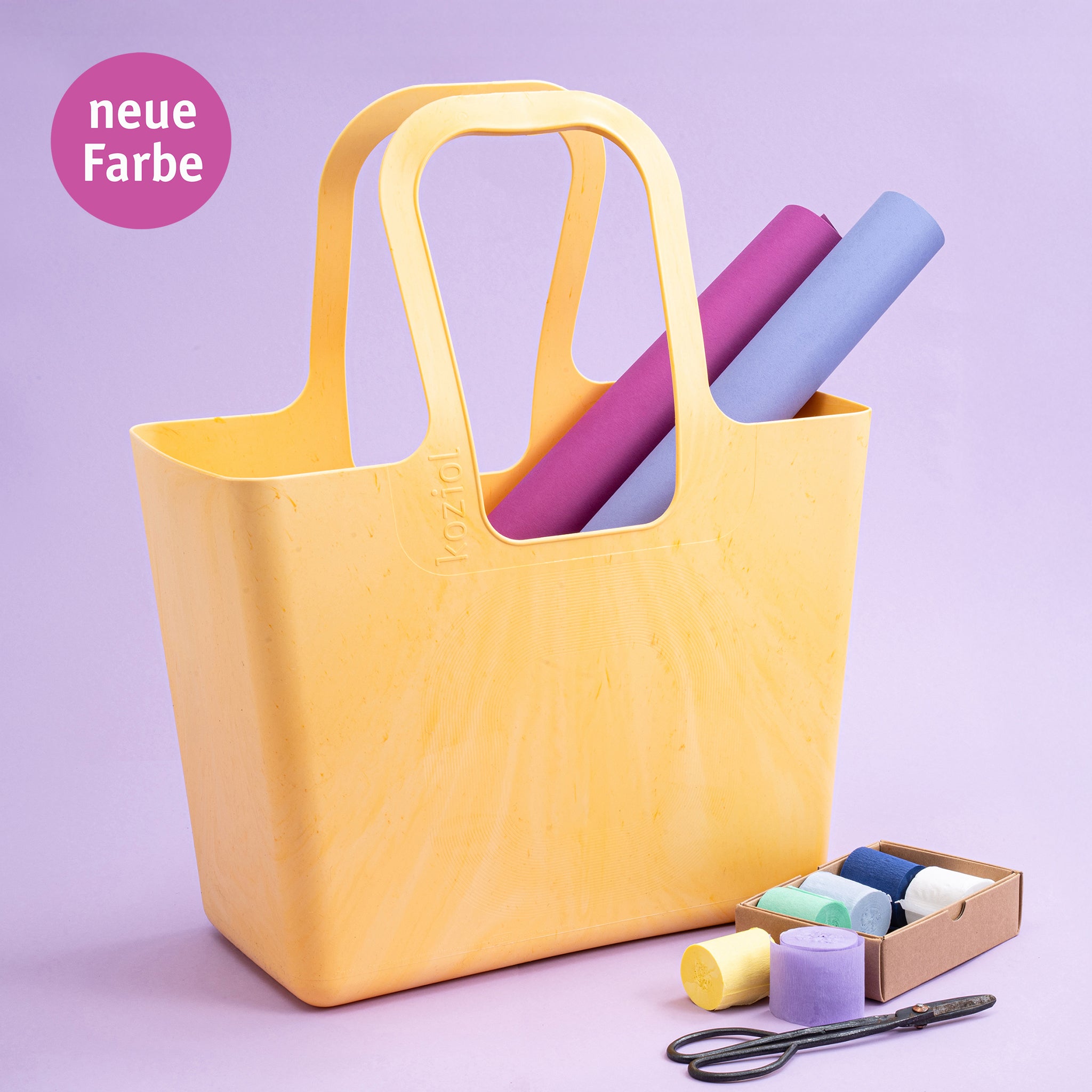 Limited edition. TASCHE XL now comes in a delicate gradient pattern in sunny yellow and fresh azure blue. Each bag is unique!