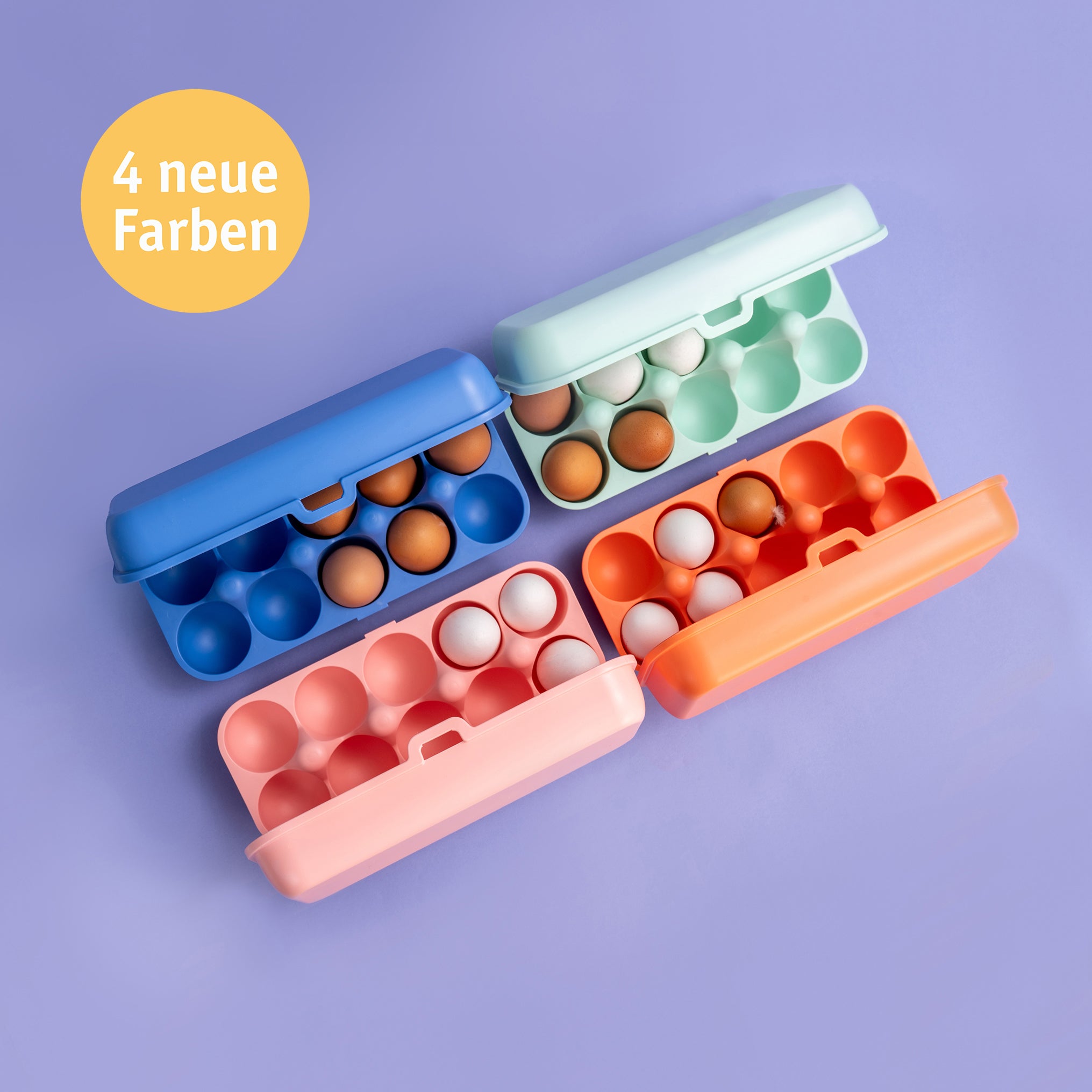 EGGS TO GO is perfect for shopping at the farmers market. It safely transports up to 10 eggs, saving a lot of disposable packaging. The carton has a practical clip closure for easy opening and closing and the shock-resistant material reliably prevents eggs from being damaged or crushed. The cartons can easily be stacked in the refrigerator, leaving valuable space for more groceries!