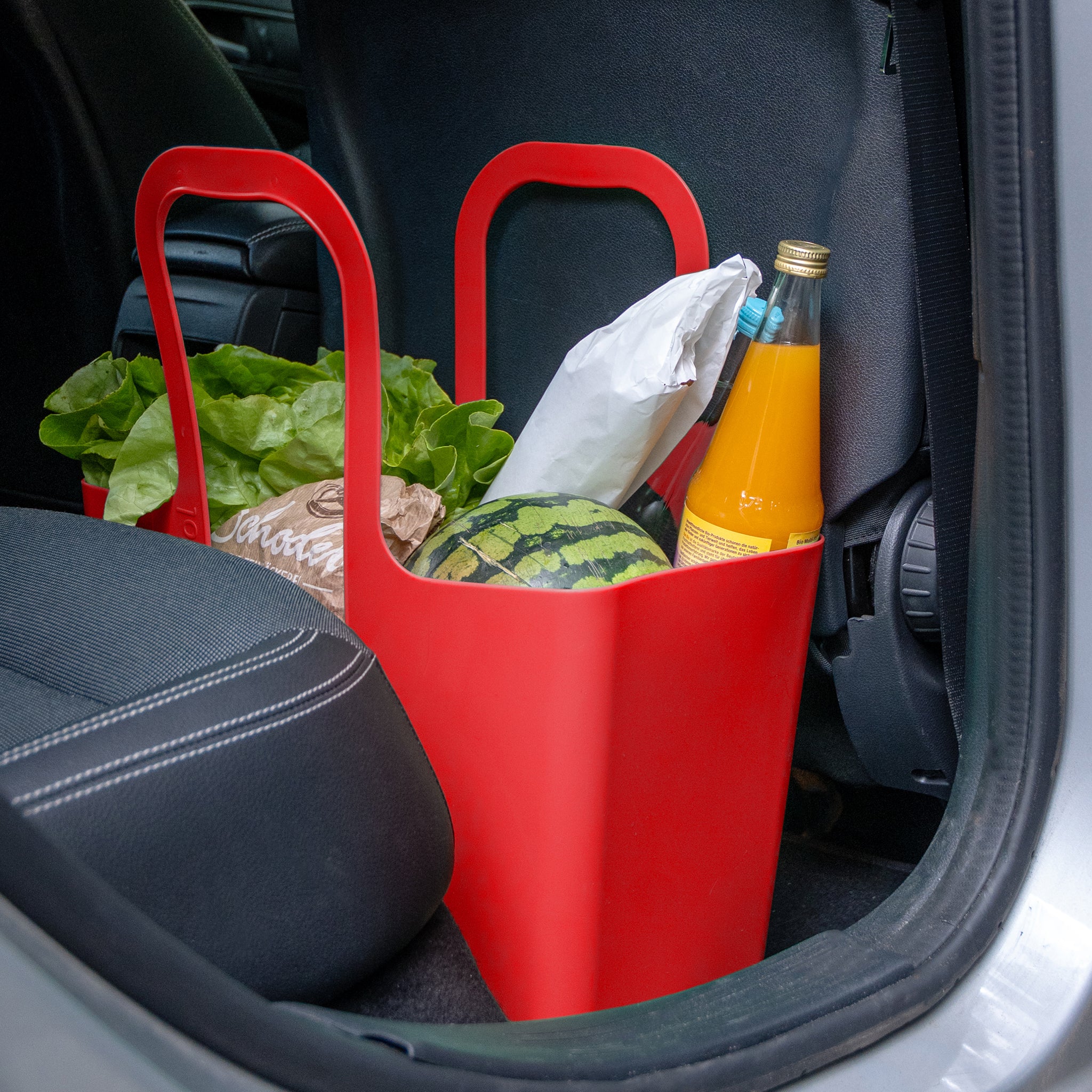 Mit ihren Idealmaßen findet TASCHE XL im Auto immer Platz hinter dem Vordersitz. So hat man die Einkäufe oder Utensilien immer griffbereit und sicher verstaut. Falls mal etwas ausläuft – kein Problem. Die Tasche lässt sich mühelos auswischen oder ausspülen, sodass sie jederzeit sauber und frisch bleibt.
