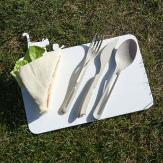 Knife, fork, spoon - that's it. Finally, there's a sensible, no-nonsense, and decently sized to-go cutlery set. No more balancing food to your mouth! All the pieces fit together and disassemble without much guesswork. To release, simply lift the knife at the tip and pull it down. All the cutlery pieces fit comfortably in your hand and, thanks to their lightweight design, fit in any bag.