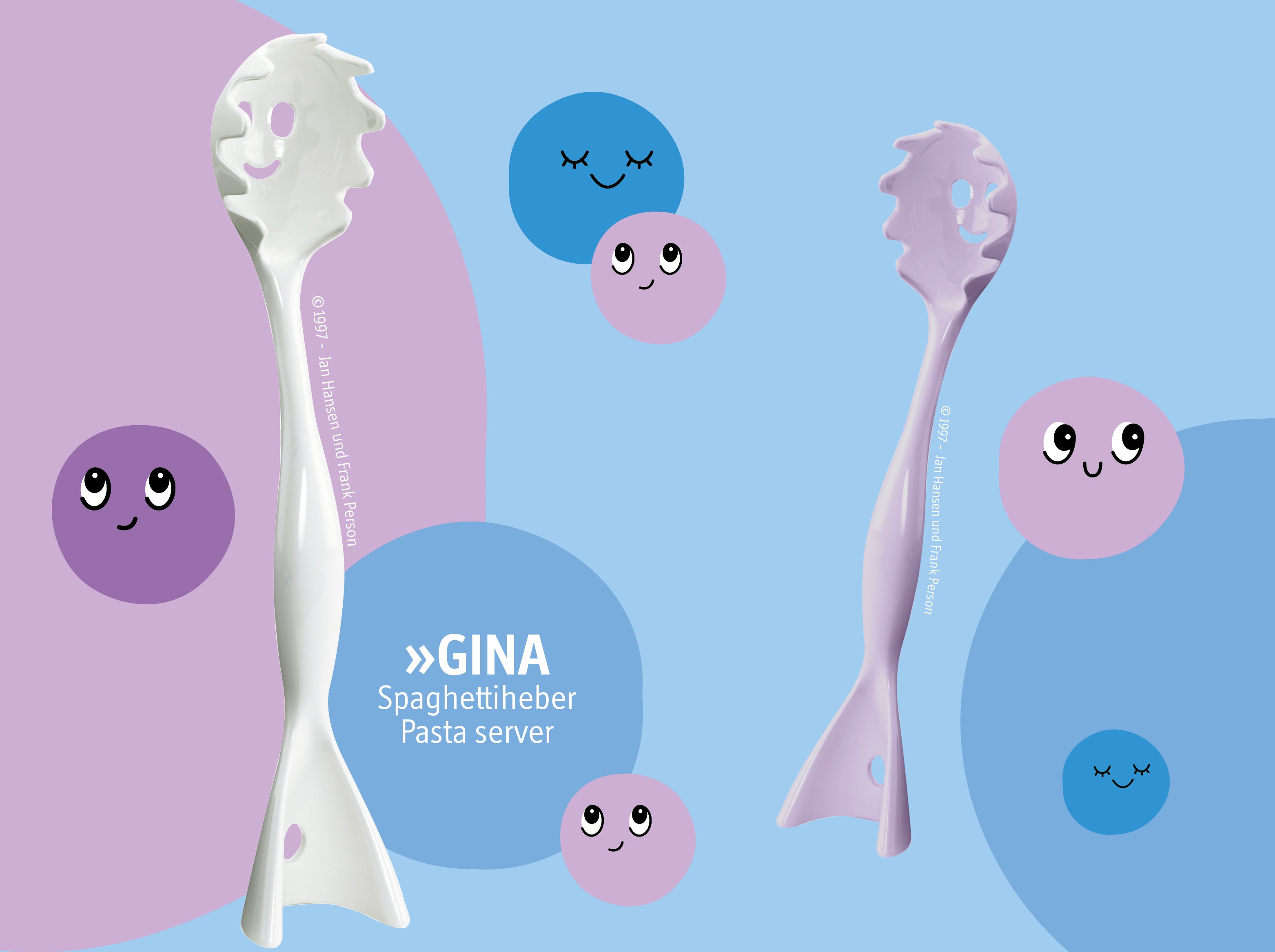 GINA macht das Servieren von Nudeln zum reinsten Vergnügen. Mit ihrem gezackten Rand greift sie Spaghetti und Tagliatelle gekonnt aus Topf oder Schüssel und kann dank ihres genialen Designs einfach aufrecht auf dem Tisch abgestellt werden. Durch den tiefen Löffel ist GINA auch bestens zum Servieren anderer Nudelsorten geeignet. Der originelle Spaghettiheber wurde 1997 von dem Darmstädter Designerduo Jan Hansen und Frank Person gestaltet.