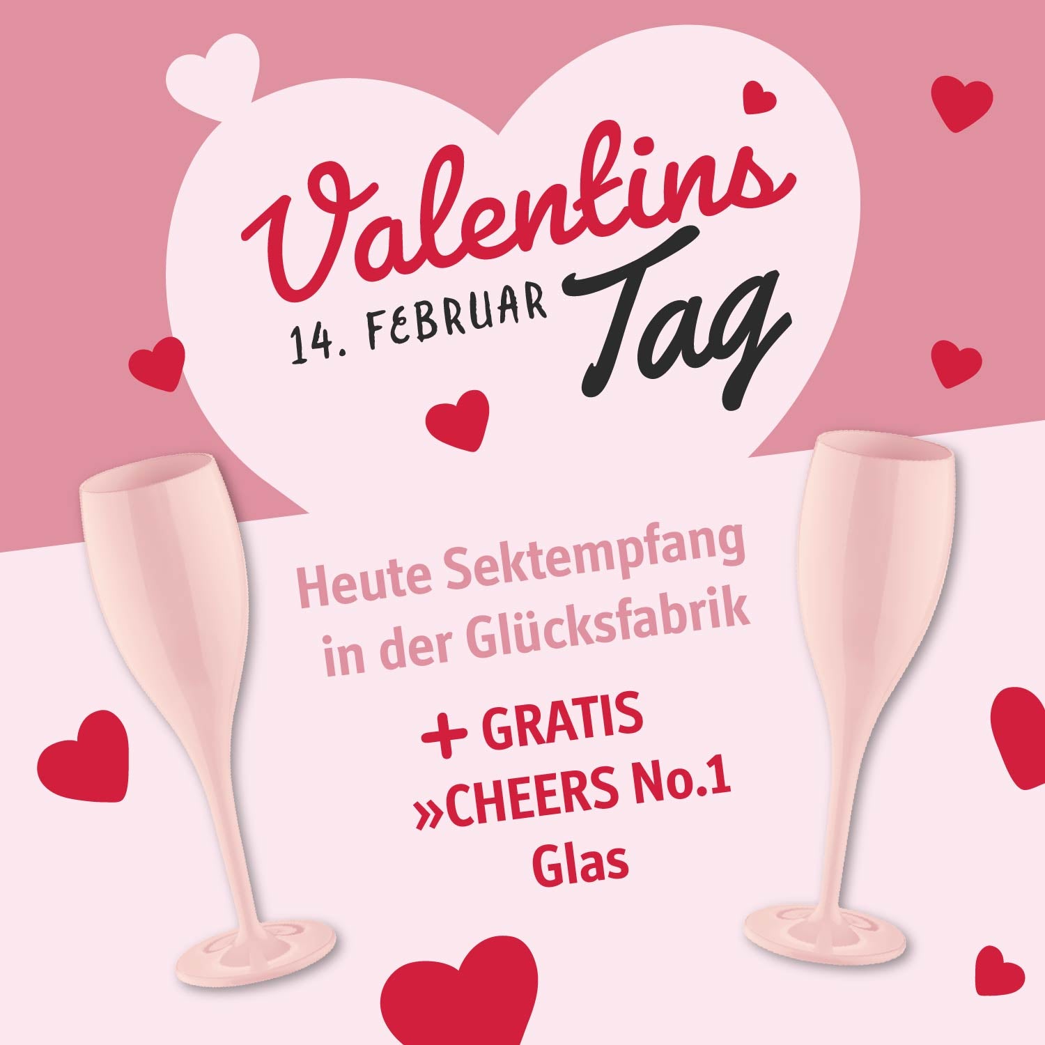 Am Samstag, 14.02.2026 laden wir alle unsere Kunden auf ein Glas Sekt ein - das CHEERS Glas dürfen Sie behalten!